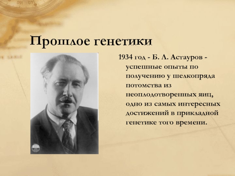 1934 год - Б. Л. Астауров -успешные опыты по получению
