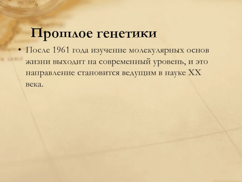 После 1961 года изучение молекулярных основ жизни выходит на современный