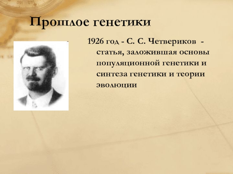 1926 год - С. С. Четвериков - статья, заложившая основы