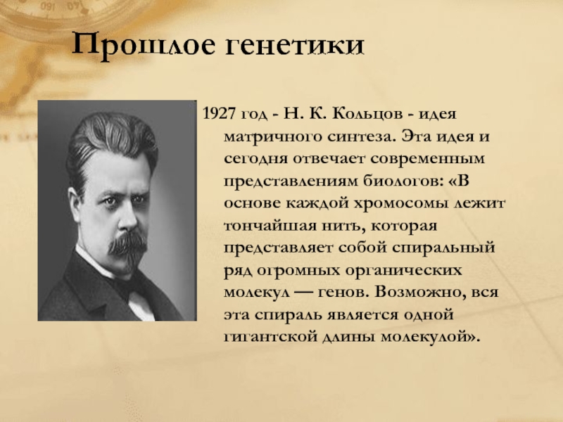 Слайд 101927 год - Н. К. Кольцов - идея матричного синтеза. Эта