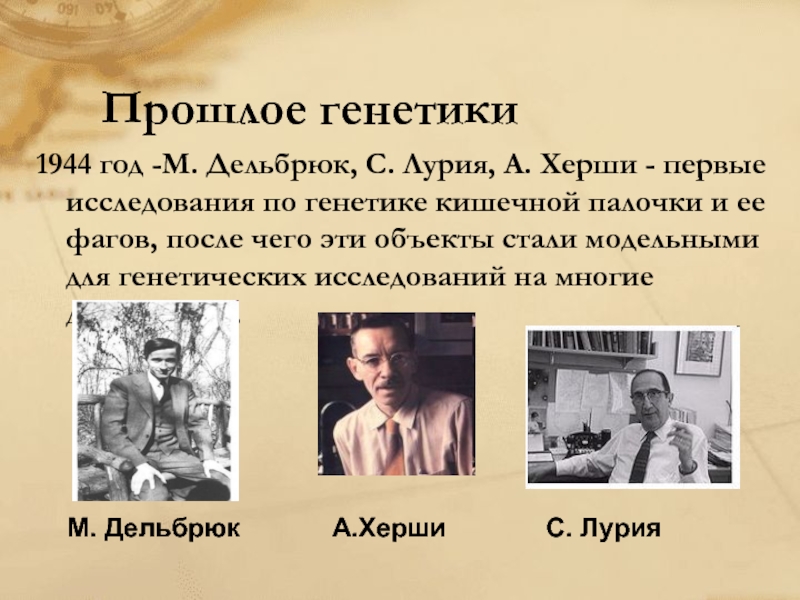 исследования по генетике кишечной палочки и ее фагов, после чего эти объекты стали модельными для генетических исследований на многие десятилетия.
