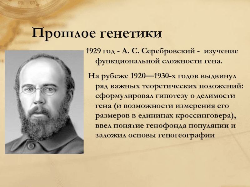 1929 год - А. С. Серебровский - изучение функциональной сложности