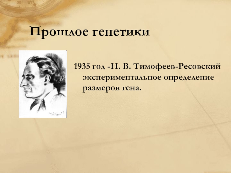 1935 год -Н. В. Тимофеев-Ресовский экспериментальное определение размеров гена.