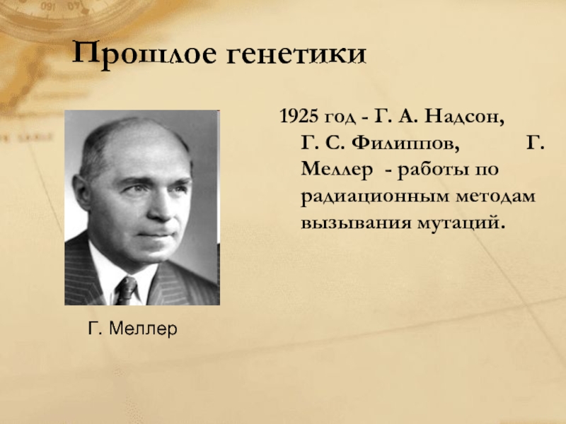 Г. Меллер - работы по радиационным методам вызывания мутаций.