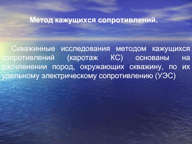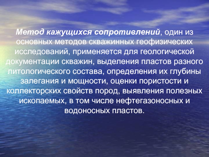 Слайд 39Метод кажущихся сопротивлений, один из основных методов скважинных геофизических исследований, применяется