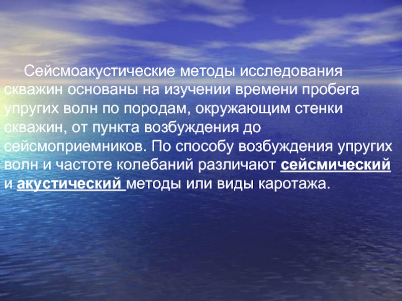 Слайд 47Сейсмоакустические методы исследования скважин основаны на изучении времени пробега упругих волн