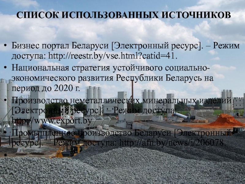 Производство неметаллических минеральных изделий [Электронный ресурс]. – Режим доступа:. http://www.export.by