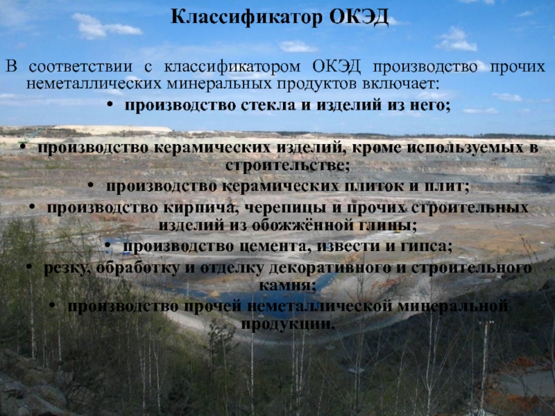 В соответствии с классификатором ОКЭД производство прочих неметаллических минеральных продуктов