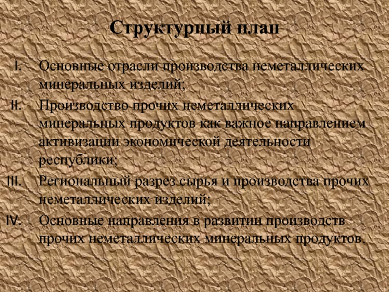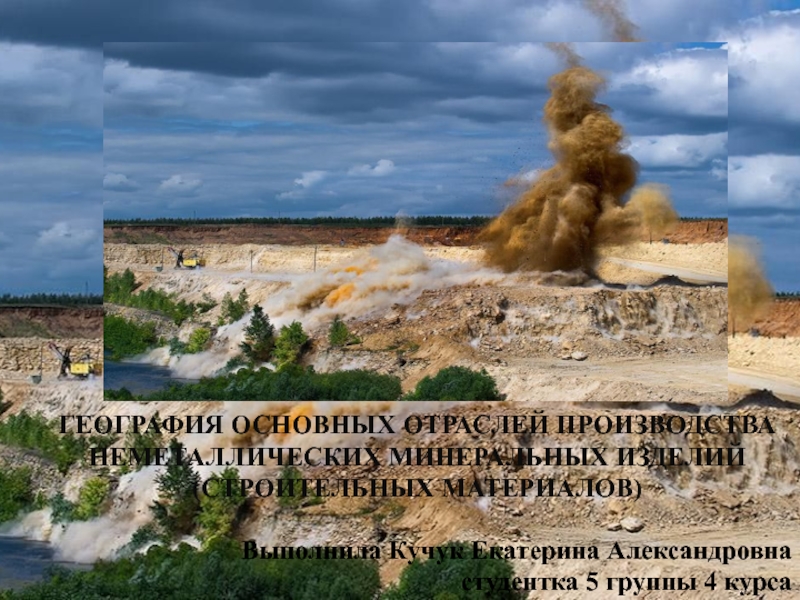 Слайд 1ГЕОГРАФИЯ ОСНОВНЫХ ОТРАСЛЕЙ ПРОИЗВОДСТВА НЕМЕТАЛЛИЧЕСКИХ МИНЕРАЛЬНЫХ ИЗДЕЛИЙ (СТРОИТЕЛЬНЫХ МАТЕРИАЛОВ)