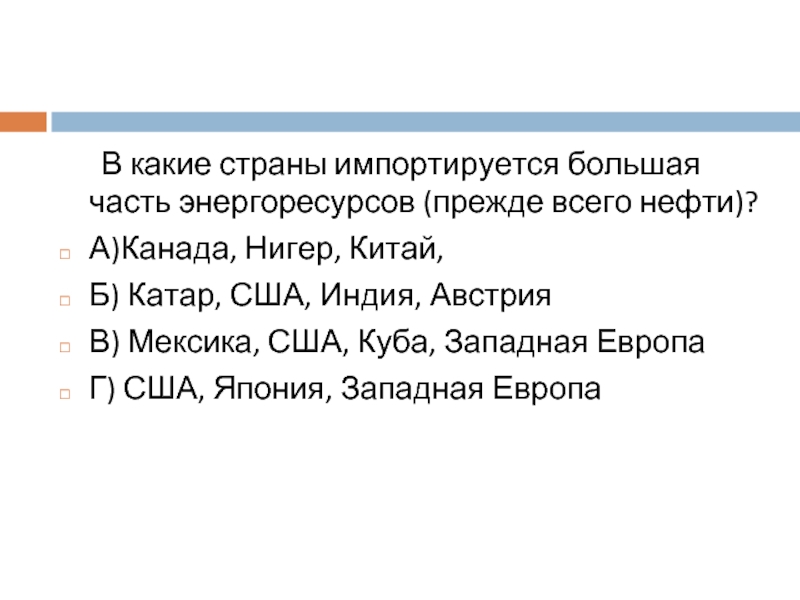 Слайд 6 В какие страны импортируется большая часть энергоресурсов (прежде всего нефти)?