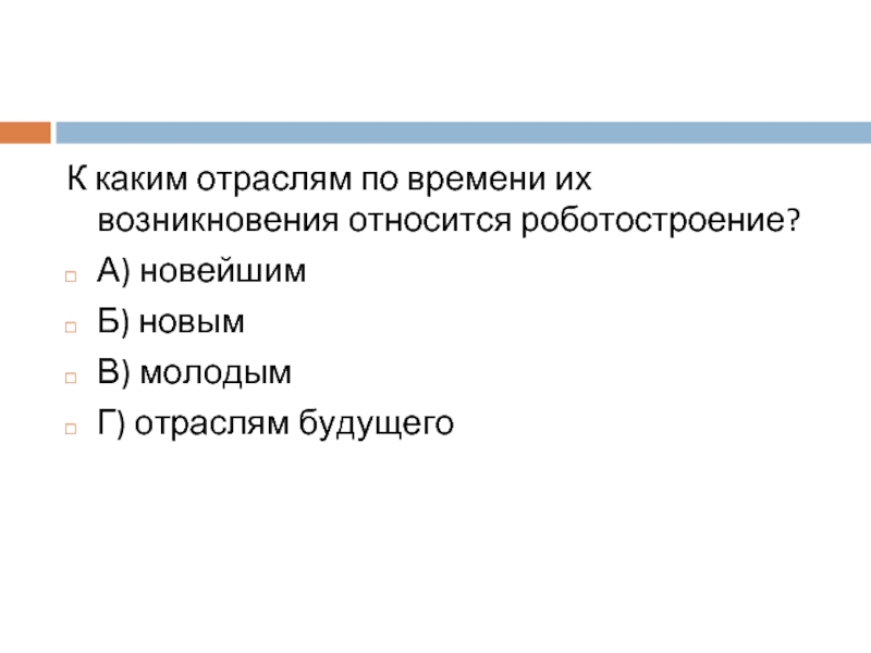 Слайд 4К каким отраслям по времени их возникновения относится роботостроение?