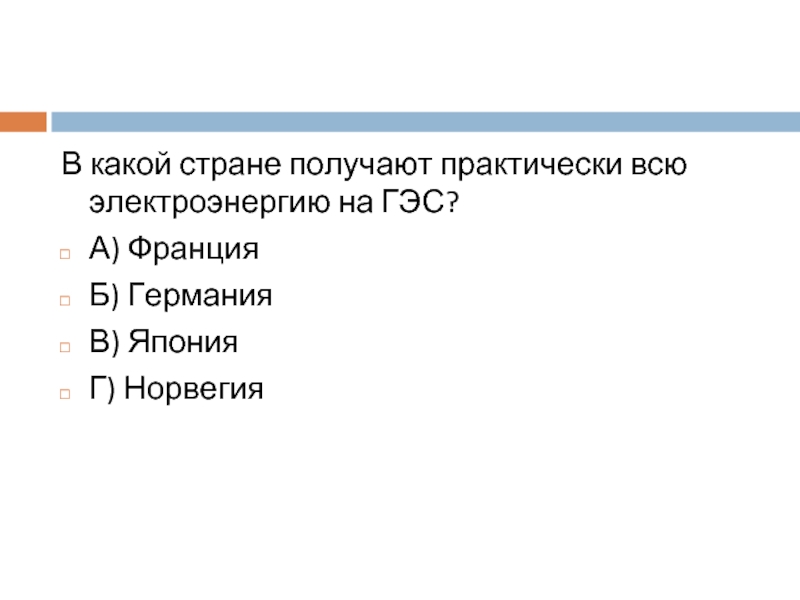 Слайд 9В какой стране получают практически всю электроэнергию на ГЭС?
