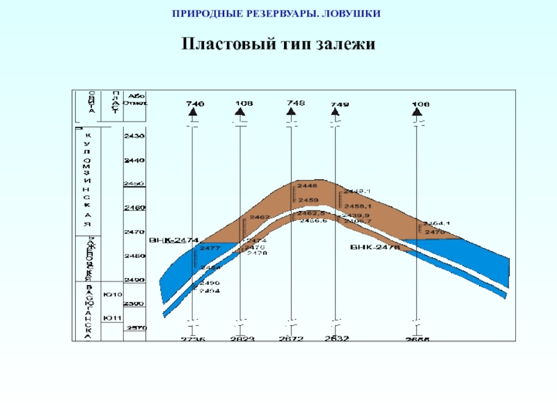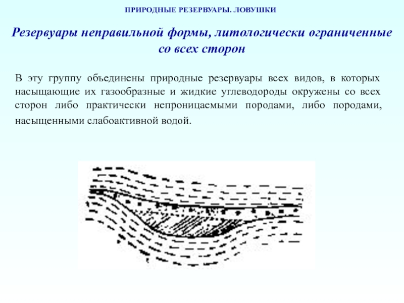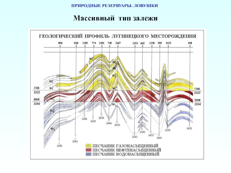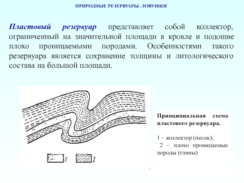 неоднородные массивные резервуары – толща пород неоднородна. Литологически она может быть представлена, например, чередованием известняков. Песков и песчаников, сверху перекрытых глинами.