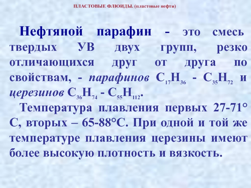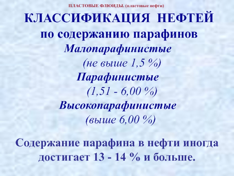 Содержание парафина в нефти иногда достигает 13 - 14 % и больше.