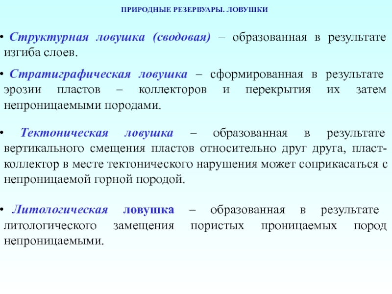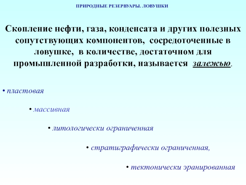 Стратиграфическая ловушка – сформированная в результате эрозии пластов – коллекторов и перекрытия их затем непроницаемыми породами.