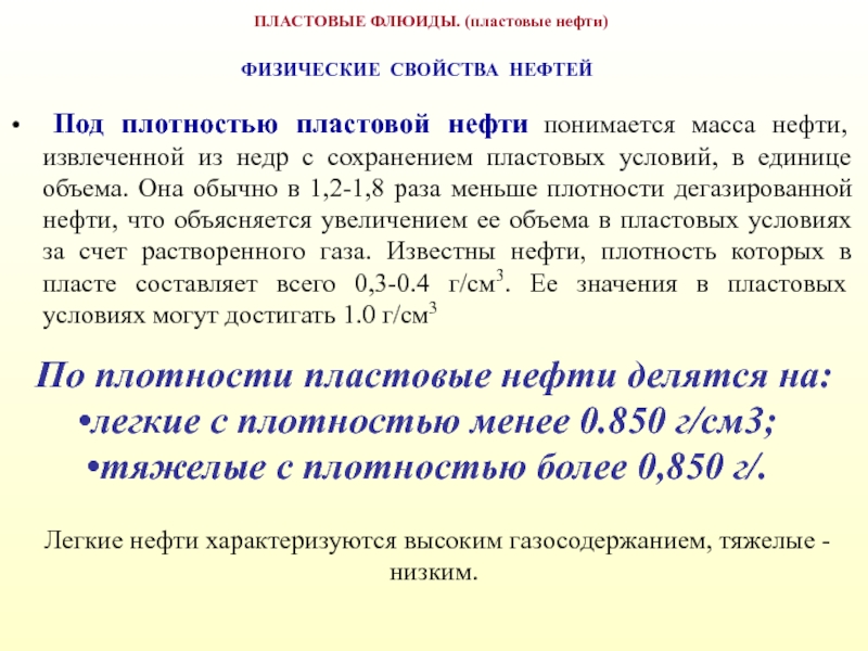 Легкие нефти характеризуются высоким газосодержанием, тяжелые - низким.