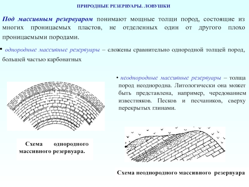 однородные массивные резервуары – сложены сравнительно однородной толщей пород, большей частью карбонатных