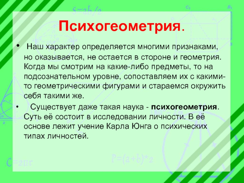 Существует даже такая наука - психогеометрия. Суть её состоит в исследовании личности. В её основе лежит учение Карла Юнга о психических типах личностей.