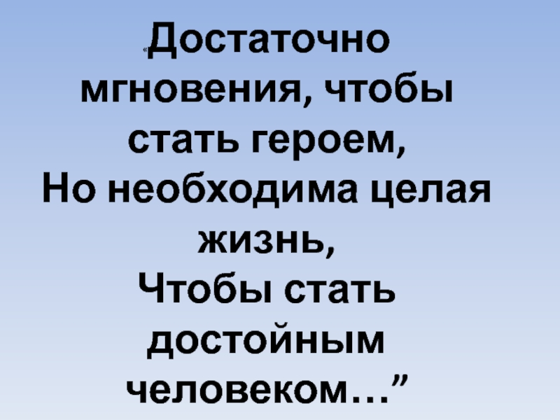 Слайд 2«Достаточно мгновения, чтобы стать героем,