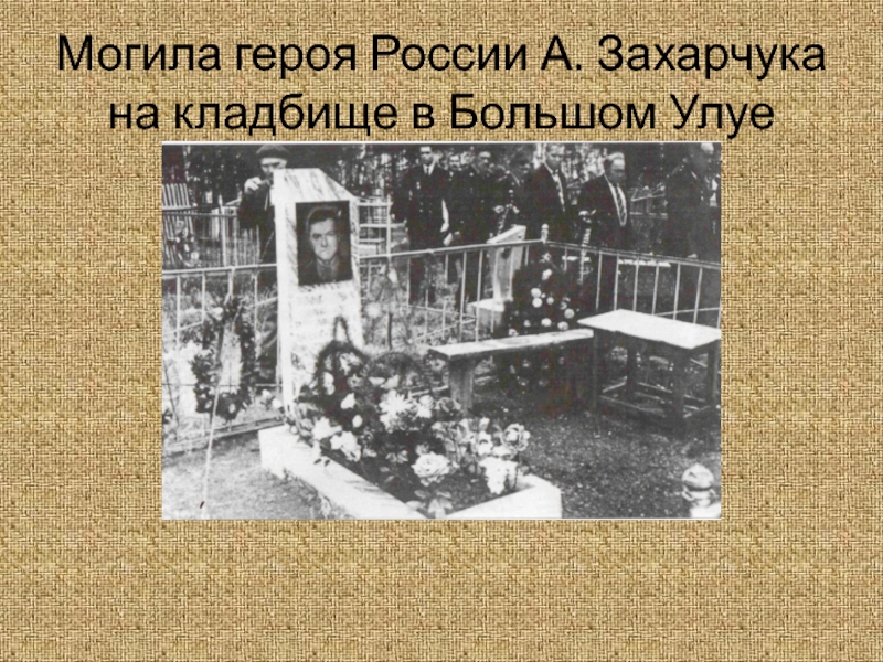 Слайд 5Могила героя России А. Захарчука на кладбище в Большом Улуе