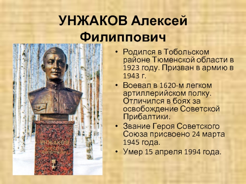 Слайд 18УНЖАКОВ Алексей Филиппович