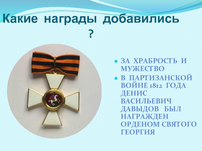ДЕНИС ВАСИЛЬЕВИЧ ДАВЫДОВ БЫЛ НАГРАЖДЕН ОРДЕНОМ СВЯТОГО ГЕОРГИЯ