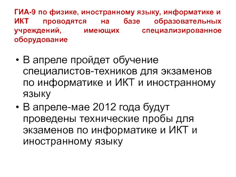 В апреле-мае 2012 года будут проведены технические пробы для экзаменов по информатике и ИКТ и иностранному языку