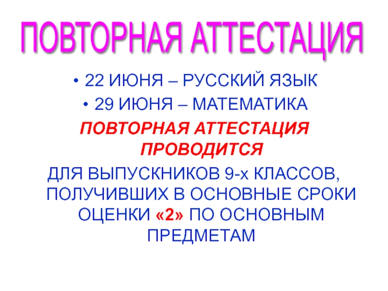 ПОВТОРНАЯ АТТЕСТАЦИЯ