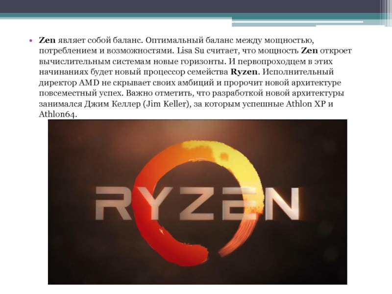 Слайд 10Zen являет собой баланс. Оптимальный баланс между мощностью, потреблением и возможностями. Lisa
