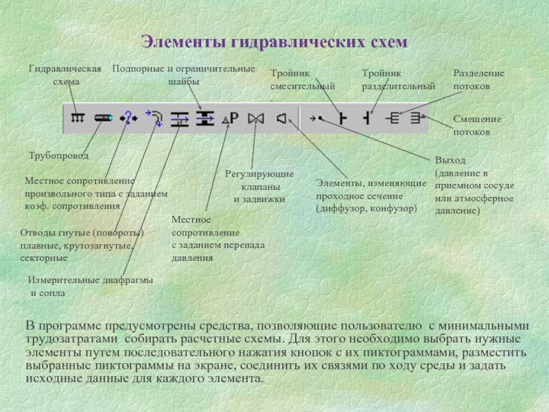 Предусмотрено 2 типа расчетов: «Задание расхода» и «Расчет расхода». Оба выполняются с учетом возможного критического истечения в любом элементе расчетной схемы.