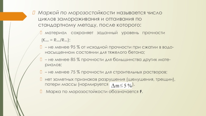 Слайд 16Маркой по морозостойкости называется число циклов замораживания и оттаивания по стандартному