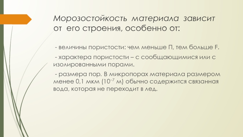 Слайд 17Морозостойкость материала зависит от его строения, особенно от: