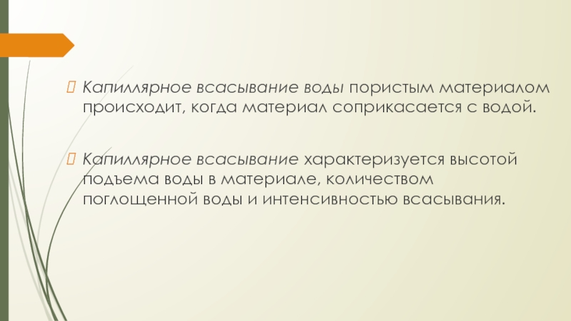 Слайд 7Капиллярное всасывание воды пористым материалом происходит, когда материал соприкасается с водой.