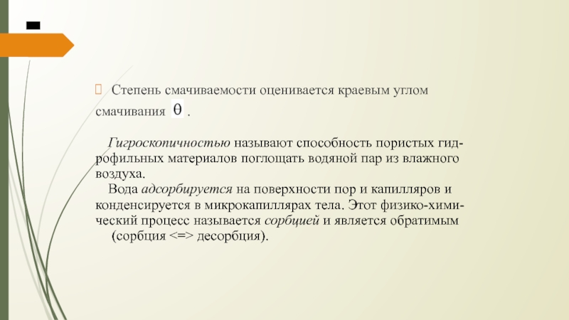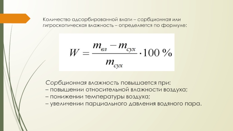Слайд 4Количество адсорбированной влаги – сорбционная или гигроскопическая влажность – определяется по