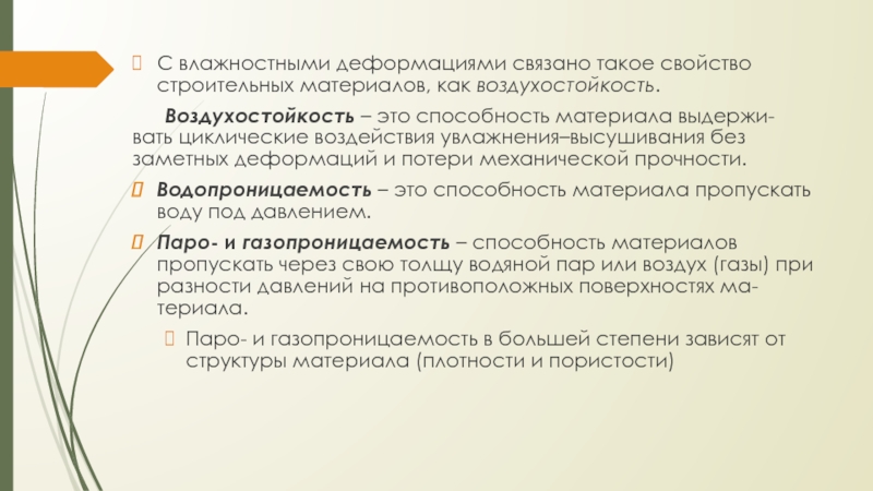 Слайд 12С влажностными деформациями связано такое свойство строительных материалов, как воздухостойкость.