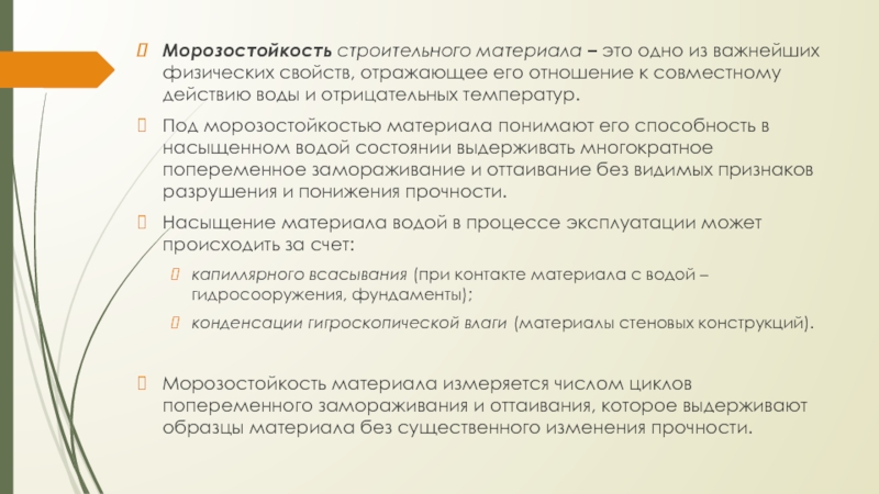 Слайд 14Морозостойкость строительного материала – это одно из важнейших физических свойств, отражающее