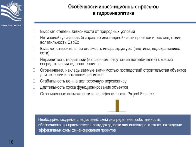 Необходимо создание специальных схем распределения собственности, обеспечивающих приемлемую норму доходности для инвестора, а также нахождение эффективных схем финансирования проектов
