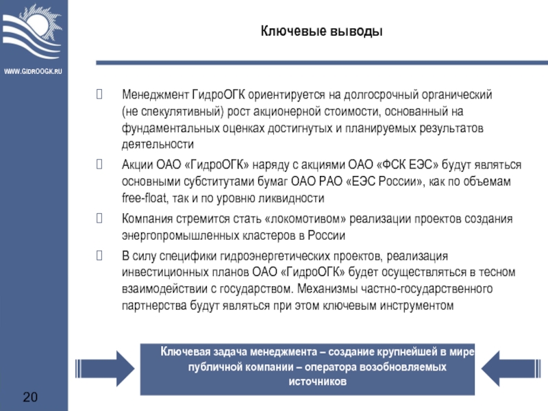 Стратегия ОАО «ГидроОГК»