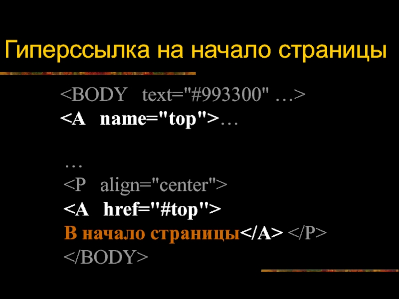 Слайд 18Гиперссылка на якорь, находящийся на другой странице