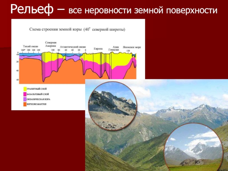 Слайд 9Рельеф – все неровности земной поверхности