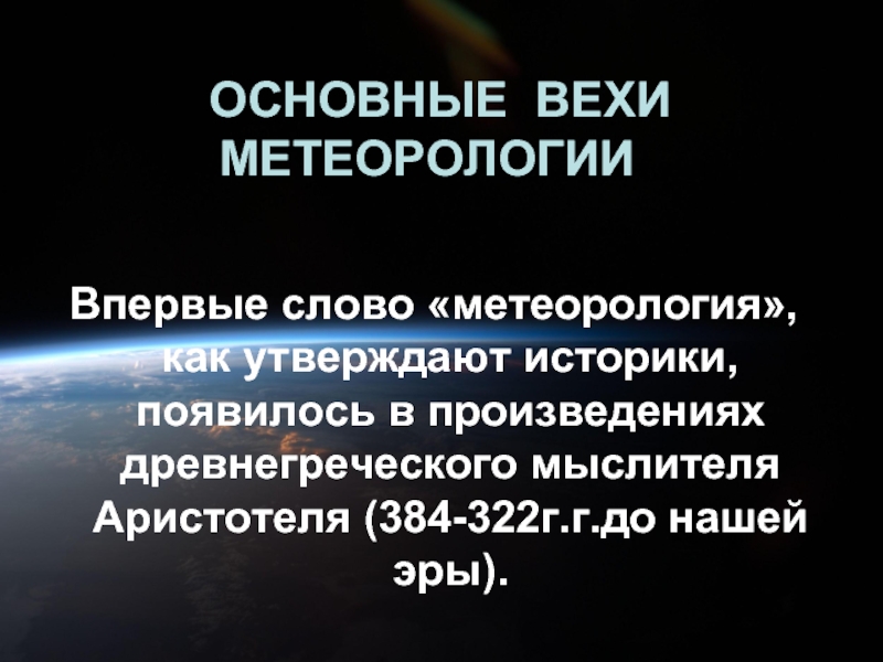 Слайд 11 ОСНОВНЫЕ ВЕХИ МЕТЕОРОЛОГИИ