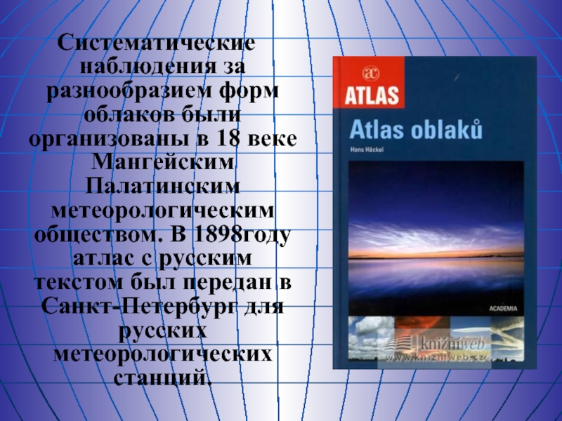 веке Мангейским Палатинским метеорологическим обществом. В 1898году атлас с русским текстом был передан в Санкт-Петербург для русских метеорологических станций.