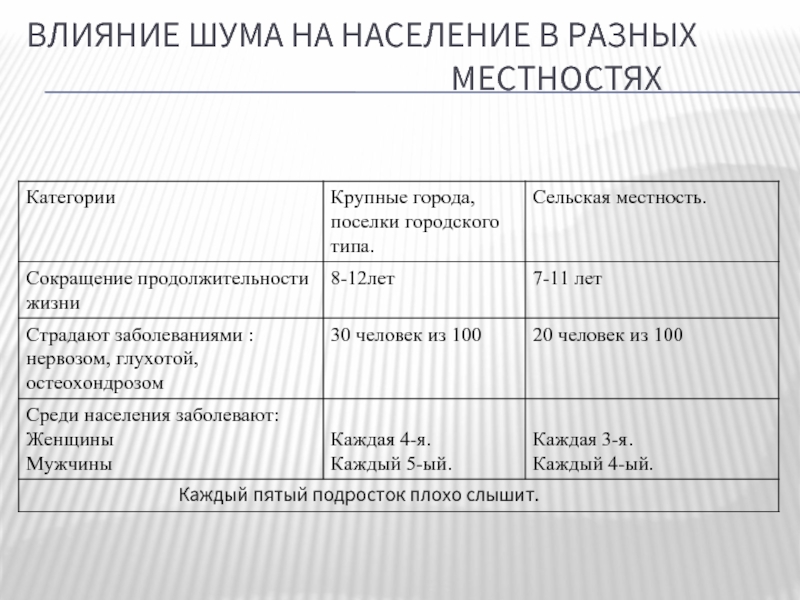 Слайд 5ВЛИЯНИЕ ШУМА НА НАСЕЛЕНИЕ В РАЗНЫХ