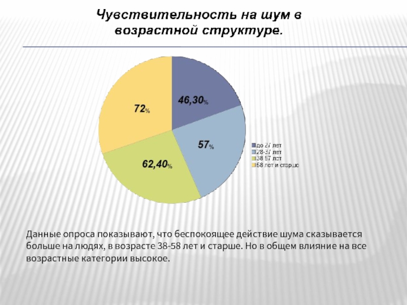 Слайд 8Данные опроса показывают, что беспокоящее действие шума сказывается больше на людях,