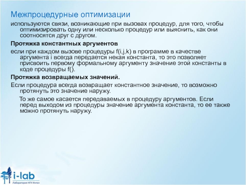Обсуждаемые в предыдущих разделах оптимизации процедурного уровня: