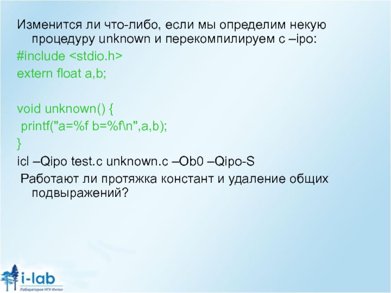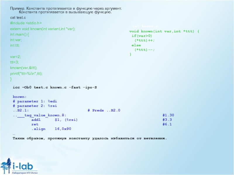 Слайд 5Ассемблер полученный с помощью icl: icс –O2 test.c –S