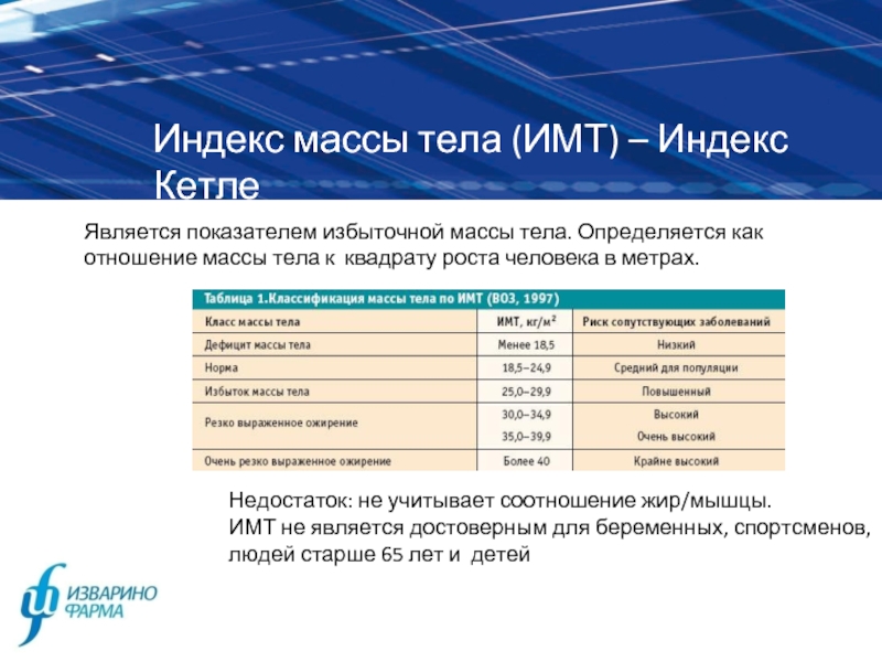 Слайд 10Индекс массы тела (ИМТ) – Индекс Кетле