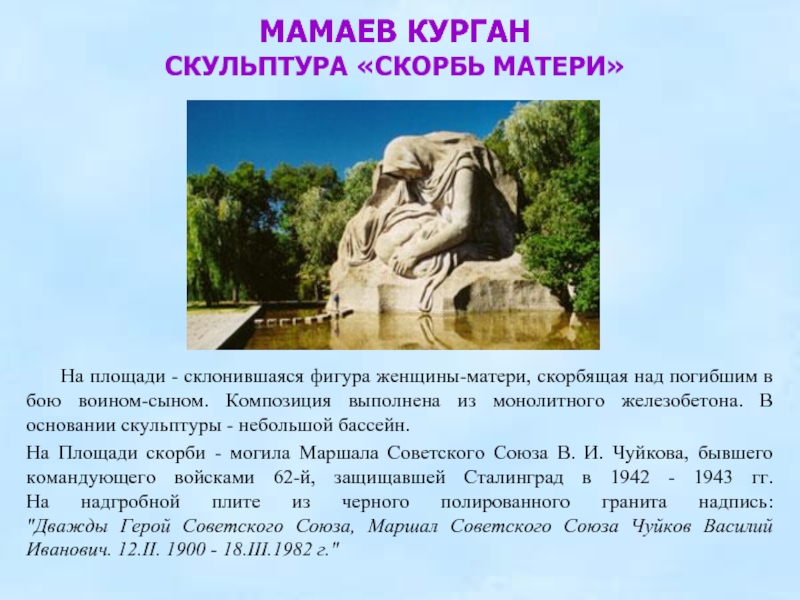 СКУЛЬПТУРА «СКОРБЬ МАТЕРИ»