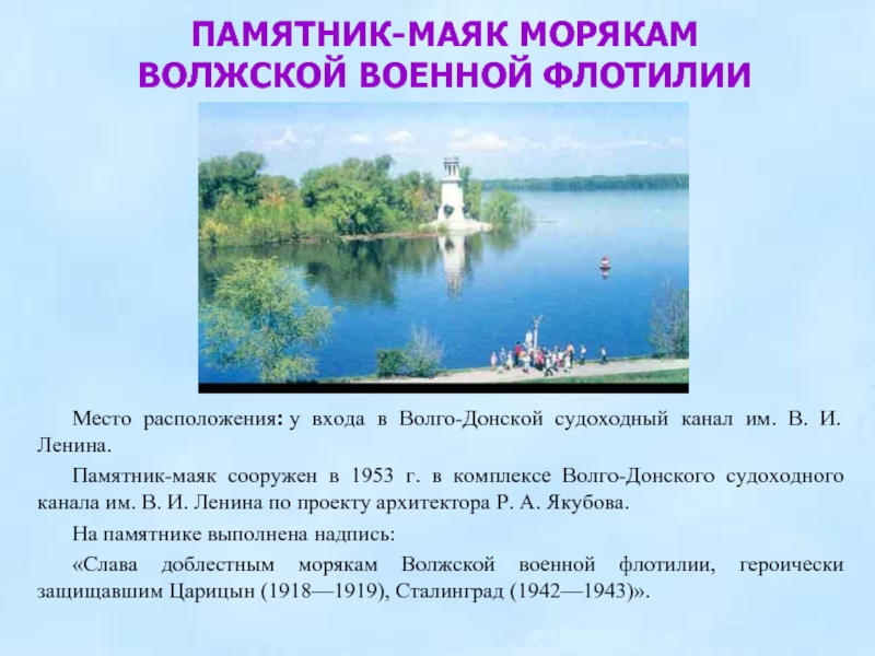 ПАМЯТНИК-МАЯК МОРЯКАМ ВОЛЖСКОЙ ВОЕННОЙ ФЛОТИЛИИ
