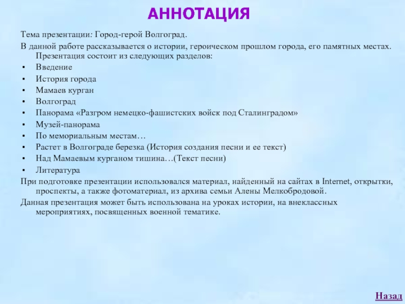 ГОРОД-ГЕРОЙ ВОЛГОГРАД